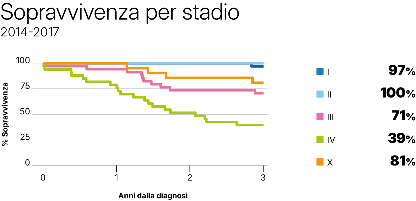 Sopravvivenza per stadio alla diagnosi 2014-2017
